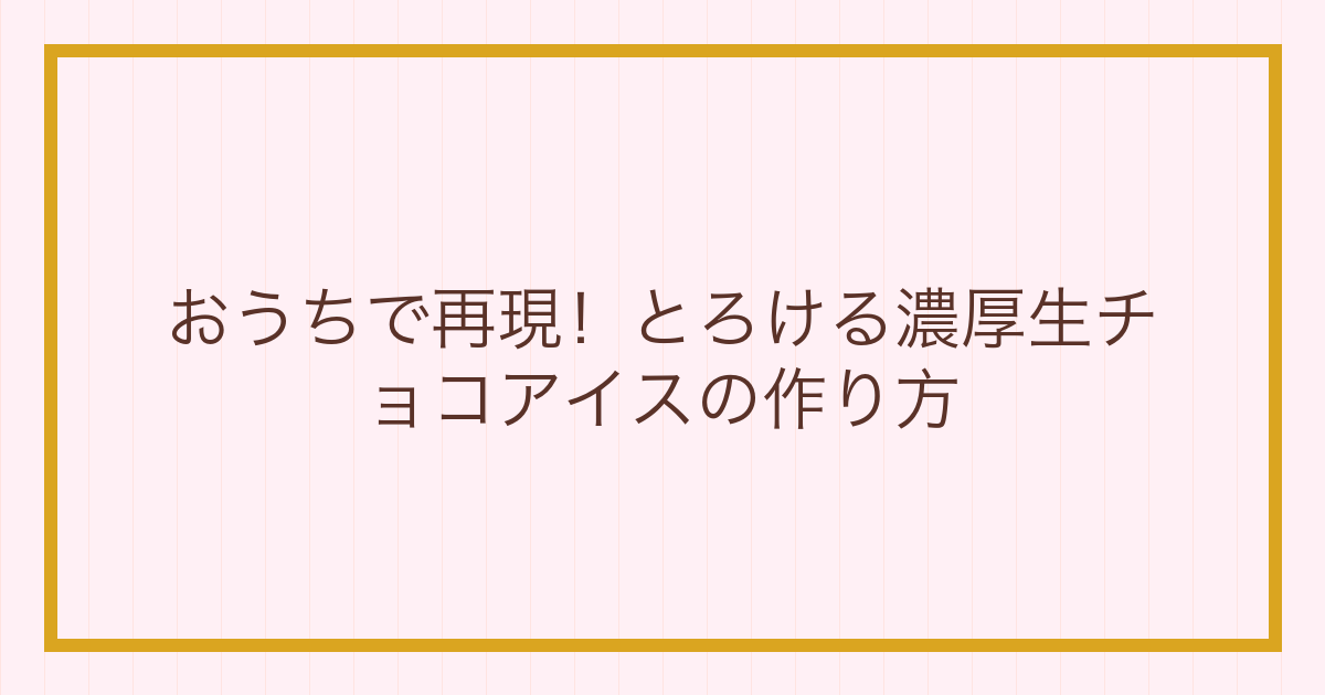 セブンイレブンで見かけるあの絶品生チョコアイス、お家でも作れたら嬉しいですよね。この記事では、濃厚でとろける口どけがたまらない「生チョコアイス」の簡単レシピをご紹介します。特別な材料は不要!誰でも失敗なく作れるので、ぜひおうちで本格的な味わいを楽しんでみてください。