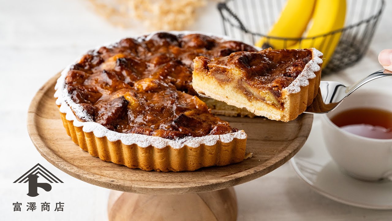 キャラメリゼしたバナナをのせて焼きこんだ、香ばしいキャラメルバナナタルトです。