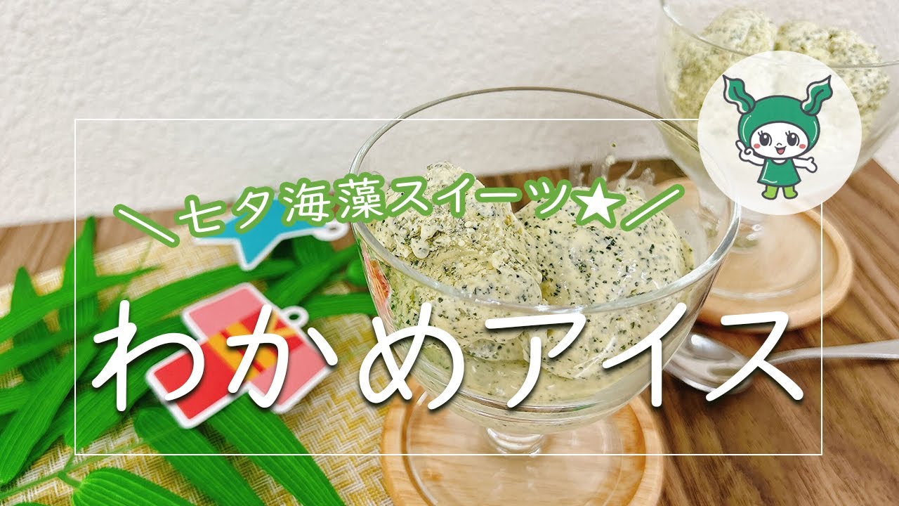 - 下準備:乾燥わかめをすり鉢ですりつぶしパウダー状にする ボウルを3つ用意する(卵黄用、卵白用、生クリーム用) 1.卵を卵黄と卵白に分けてそれぞれのボウルに入れる 2.卵黄の入ったボウルにわかめパウダーと砂糖を半分入れ湯煎して木べらで混ぜながら溶けるまで温める ※残りの砂糖は卵白に使う 3.砂糖が溶けたら泡立てて、全体が混ざったらバニラエッセンスを適量加え混ぜる 4.卵白を白っぽくなるまで泡立てる 残りの砂糖を加えて角が立つ程度まで泡立てる 5.生クリームを角がほんのり立つ程度まで泡立てる 6.生クリームに卵黄、卵白を加える 泡が消えないように軽くふわっと混ぜる 7.型に流し込んで冷やし固める 8.2時間おきにかき混ぜて5~6時間くらいひやせば出来上がり 9.器に盛って完成! 1962年創業、老舗の海藻加工メーカーです。 ♦X
