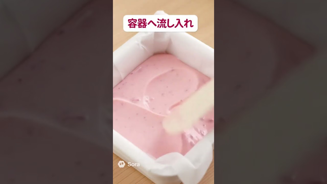 - 冷凍可能な容器に流し入れ、冷凍庫へ。途中で何度か取り出してかき混ぜると、ふんわり食感に。