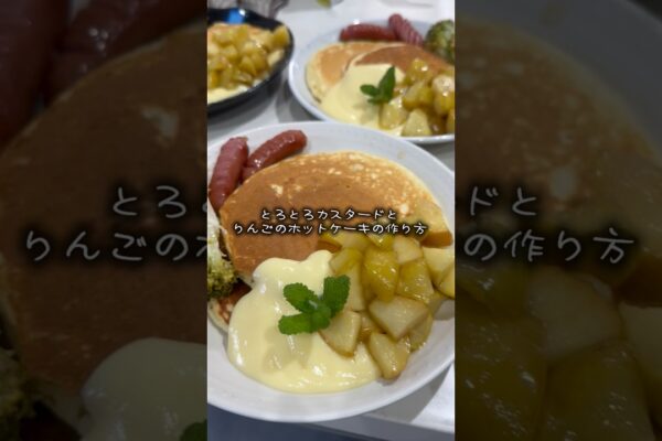 【とろとろカスタードとりんごのホットケーキ】詳しいレシピは概要欄から↓↓↓