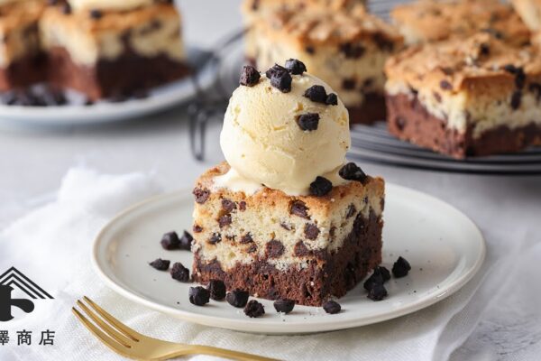 ブルッキーとはブラウニーと、チョコチップクッキーを、合わせて焼く、アメリカのお菓子のこと。別々に作った生…