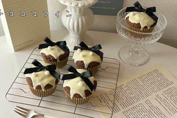 美味しくてめっちゃ簡単! ワンボウル🥣で混ぜるだけの ホケミで作れるチョコマフィン🍫🎀🖤 シンプルなデコ…