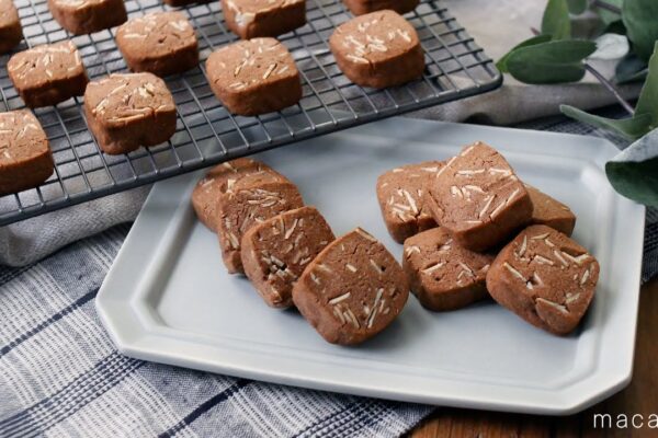 「アーモンドクッキー」のレシピと作り方を動画でご紹介します。ココア生地にアーモンドスライスをたっぷり混ぜ…