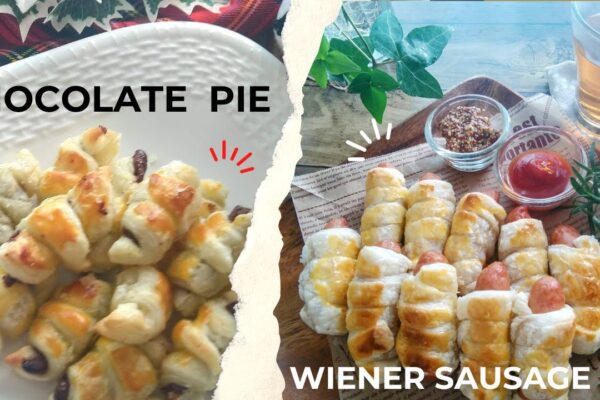 【チョコパイとウインナーパイ】簡単!冷凍パイシートとトースターを使ったお菓子作りレシピひとくちサイズのチョコクロワッサンと、ウインナーパイの作り方