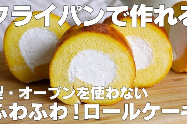 材料 12cm丸型を15cm丸型→1.5倍 フライパンでロールケーキが作れてしまいます。 しっとりふわふ…