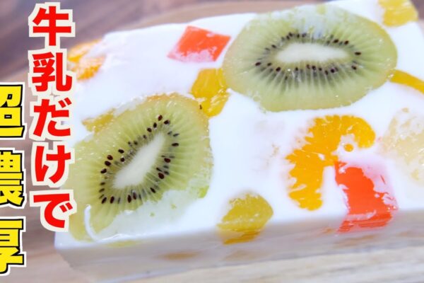 牛乳だけなのに超濃厚なフルーツ牛乳寒天! 練乳や生クリームを使わなくても作れます! 材料 濃厚牛乳寒天-…