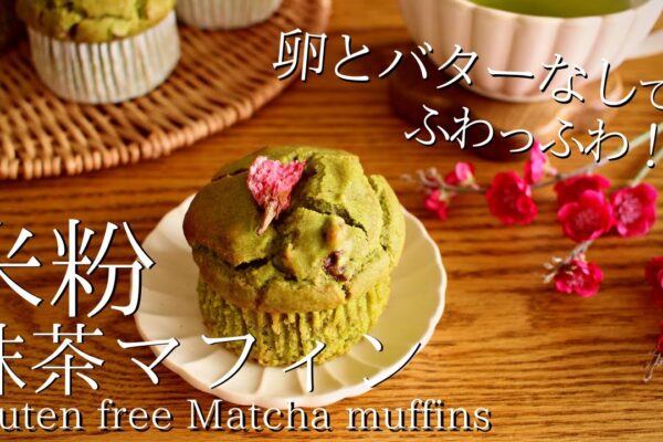 【簡単ふわふわ♡】米粉の抹茶マフィン作り方|卵なしバターなしお菓子 How to make gluten-free matcha muffins