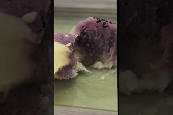 サツマイモと砂糖だけで作るお芋のきんとん。紫芋パウダーで色付けして2色の茶巾絞りに仕上げました。レンチン…