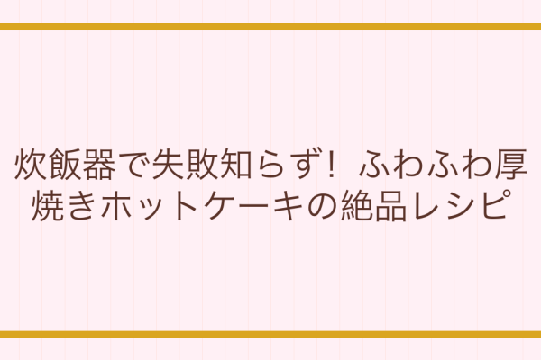 炊飯器を使えば、誰でも簡単にふわふわ厚焼きホットケーキが作れます!ホットケーキミックスと少量の材料で、とっておきのおやつが完成。失敗知らずの絶品レシピを動画と詳細な手順でご紹介します。
