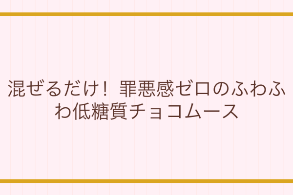 ダイエット中でも安心!混ぜて冷やすだけのとろける低糖質チョコムースレシピ。高カカオチョコレートと甘味料で、罪悪感ゼロの濃厚な味わいを実現。簡単なのに本格スイーツ、おうちで手軽に楽しめます。